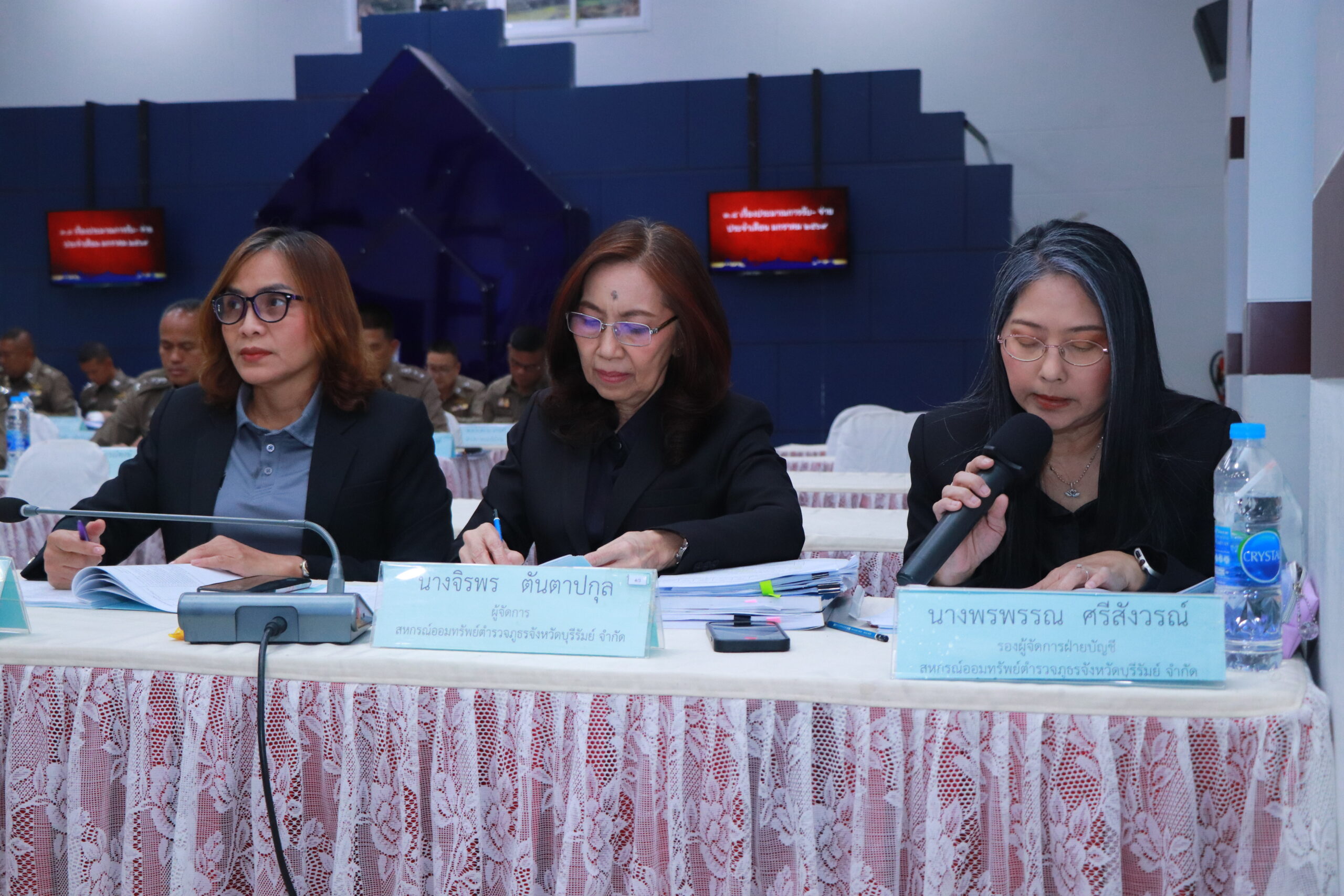 พล.ต.ต.วรายุส์ จันทร์เยี่ยม ประธานกรรมการ ฯ พร้อมด้วย พ.ต.อ.ปริญญา พรเดชาพิพัฒ รองประธานกรรมการ, พ.ต.อ.เจตน์สฤษฎิ์ แพ่งศรีสาร รองประธานกรรมการ, พ.ต.อ.กัมพล วงษ์สงวน รองประธานกรรมการ, พ.ต.อ.ศิริวัฒน์ สมกิจศิริ รอง ผบก.ภ.จว.บุรีรัมย์ , พ.ต.อ.อดิศร สุวรรณรักษ์ และคณะกรรมการสหกรณ์ออมทรัพย์ตำรวจภูธรจังหวัดบุรีรัมย์ พร้อมด้วยฝ่ายจัดการประกอบด้วย นางจิรพร ตันตาปกุล ผู้จัดการ, นางพรพรรณ ศรีสังวรณ์ รองผู้จัดการฝ่ายบัญชี, นางปานรดา คงพลปาน รองผู้จัดการฝ่ายสินเชื่อ ร่วมการประชุมสหกรณ์ออมทรัพย์ตำรวจภูธรจังหวัดบุรีรัมย์ จำกัด ครั้งที่ 5/2569 วันอังคารที่ 27 มกราคม 2569 ณ หอประชุมชัยจินดา ตำรวจภูธรจังหวัดบุรีรัมย์